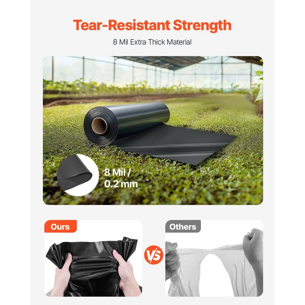 - Effective protection: the plastic sheeting roll with black film surface offers excellent opacity to block sun rays, reducing weed growth and protecting flowers, vegetables, and other plants from invasive weeds