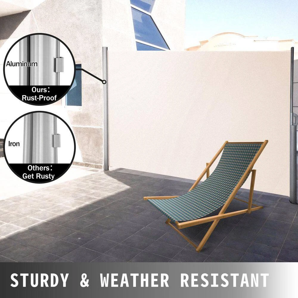 The 63 in. x 118 in. Retractable patio screen is made of aluminum alloy frame and thickening polyester fabric coated that is breathable waterproof UV resistant and flame retardant. Our outdoor retractable gate perfectly protects your privacy from the eyes of strangers or neighbors. Meanwhile, protect from wind sun or wind and elegance to your outdoor living space.