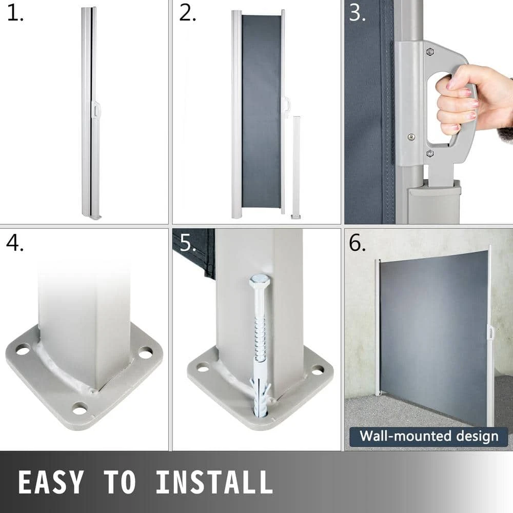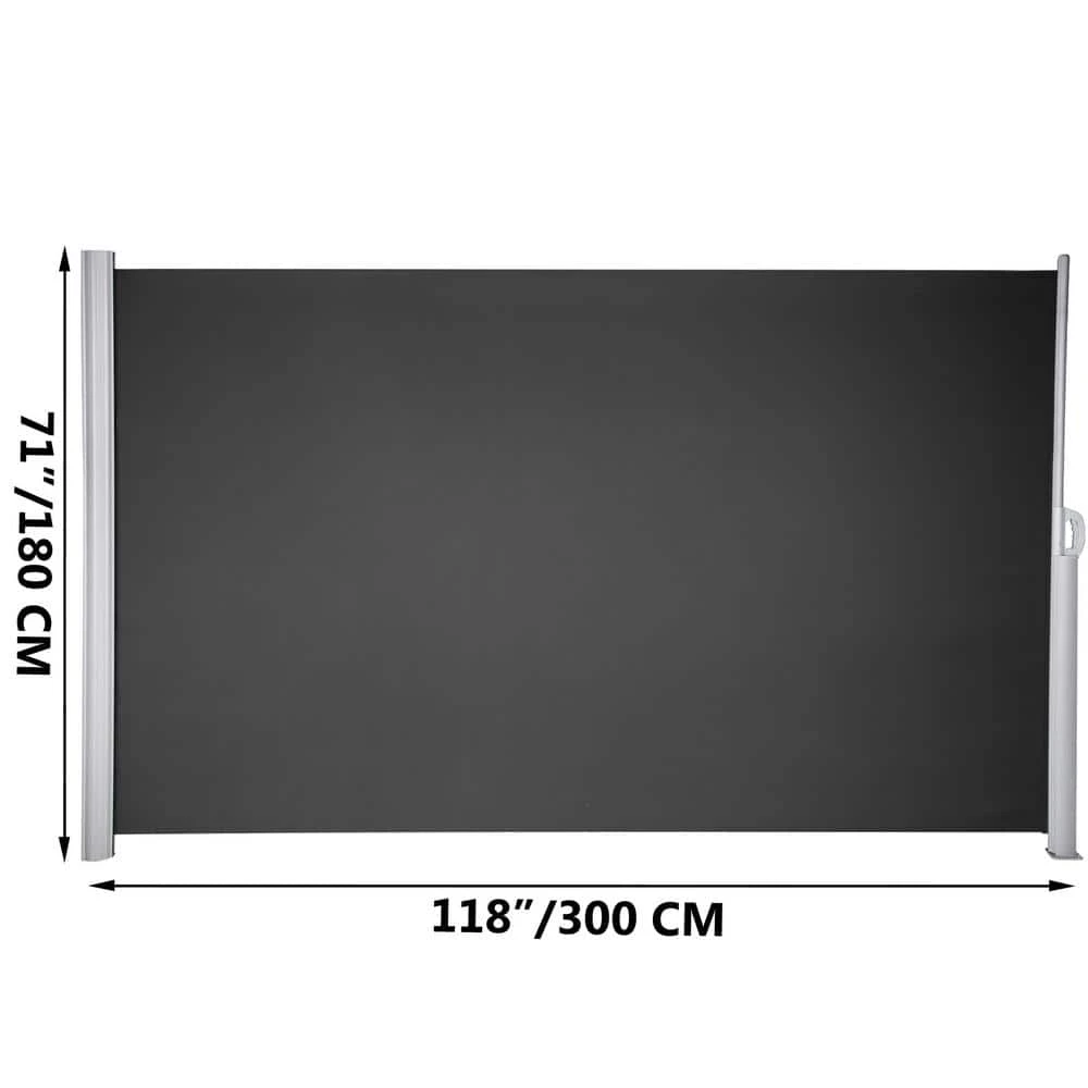 The VEVOR 71 x 118 inch retractable patio screen is made of aluminum alloy frame and thickening polyester fabric coated that is breathable waterproof UV resistant and flame retardant. Our outdoor retractable gate perfectly protects your privacy from the eyes of strangers or neighbors. Meanwhile, protect from wind sun or wind and elegance to your outdoor living space.