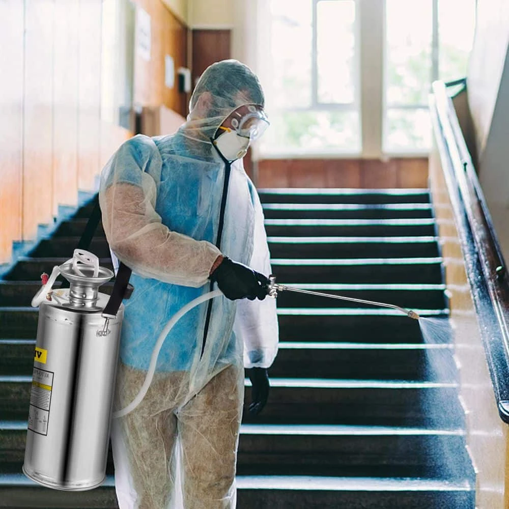 The VEVOR 2-Gallon hand-pumped sprayer is a practical and multi-functional tool for indoor and outdoor use. Featuring stainless steel, this sturdy sprayer is compatible with most commercial liquid fertilizers. Boasting large flow piston rod and its humanized handle, it is designed for easy use and also for quickly building up air pressure with no need for outlet or extension cord. A good choice for home, gardening, tourist vehicles, special vehicles, ships, vehicles cleaning, carpet cleaning, and ground cleaning.