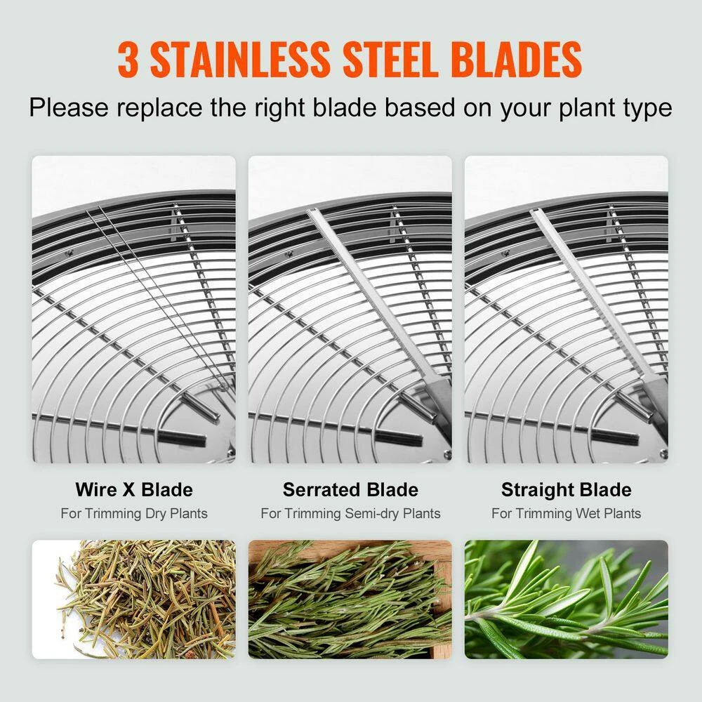 - Replaceable blades: our manual bud trimmer features 3 kinds of stainless steel blades to cater to different plant types, the straight blade is designed for wet plant trimming, the serrated blade is for dry trimming, while the wire in.xin. blade is used for the semi-dry plant, the rust-proof blades are easy to clean, but please be careful