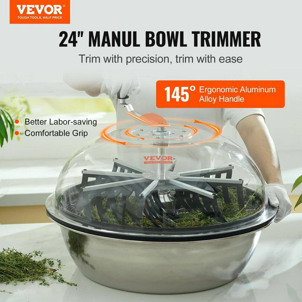 - Visible operation: with the clear lid of our leaf bowl trimmer, you can see the trimming in action from the front row, watch your buds change before your eyes, the 24 in. stainless steel trim bowl is convenient to clean up in time and provide a clean and non-stick pruning surface, while the rubber pad ensures stability, keeping the trimmer securely in place for flawless trims