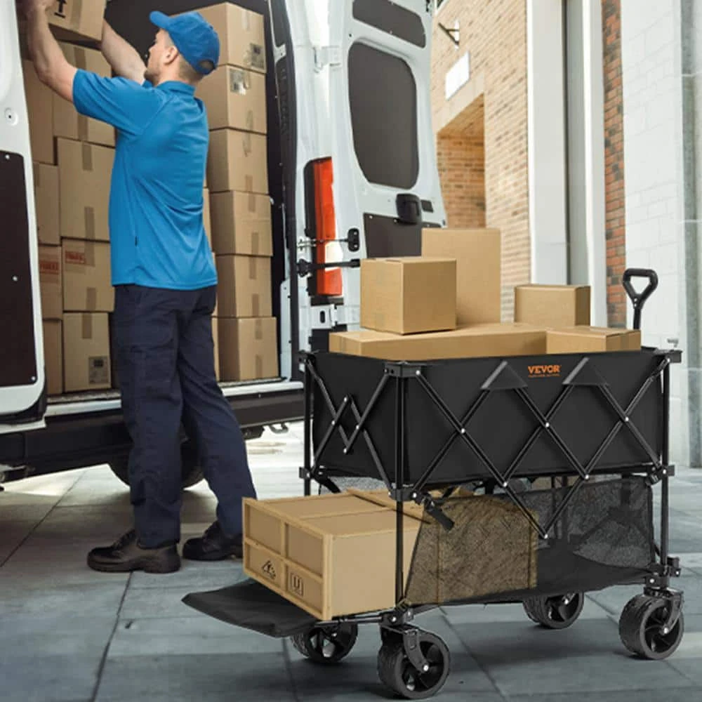 3 Cu. Ft. Steel Garden Cart Collapsible Folding Wagon Beach Folding Wagon Cart Max 350 Lbs.