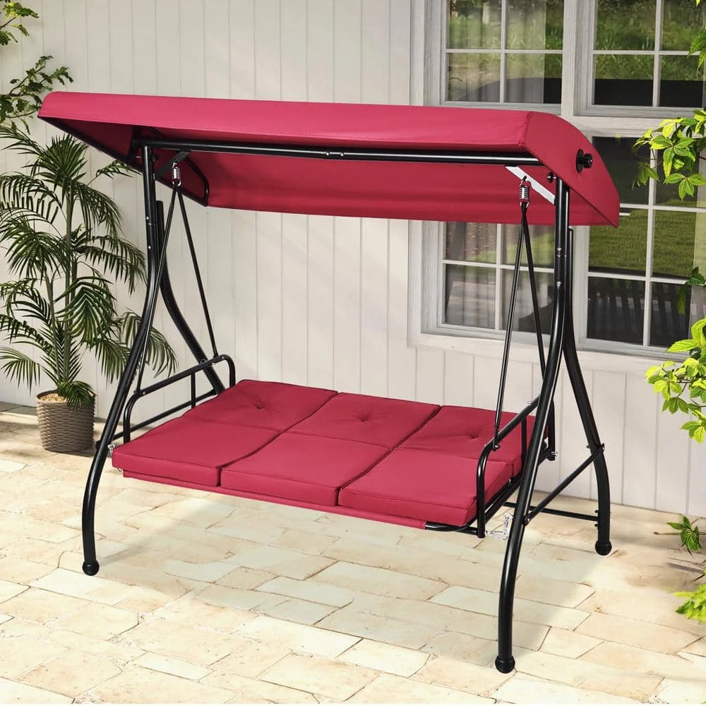 - 2-in-1 convertible design: the backrest adjusts to a flat position, transforming the patio swing with canopy into a cozy reclining bed with a simple pin insertion, perfect for relaxing in the patio, garden, or any outdoor space, catering to various relaxation needs