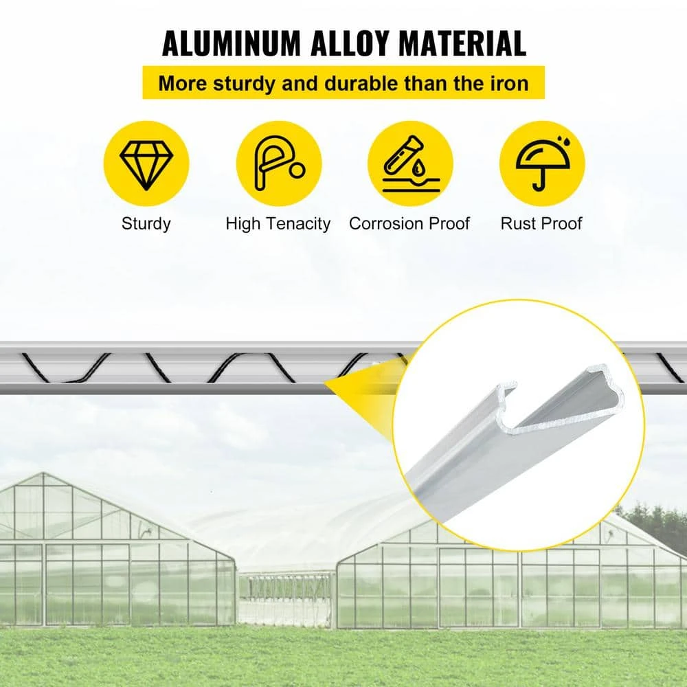 The VEVOR lock channel is made of aluminum alloy. And the spring wire adopts a superior iron core and PE cover, which is sturdy and durable, matching each other perfectly. They can fix the plastic tightly to resist the storm and keep the greenhouse warm, having a wide application.