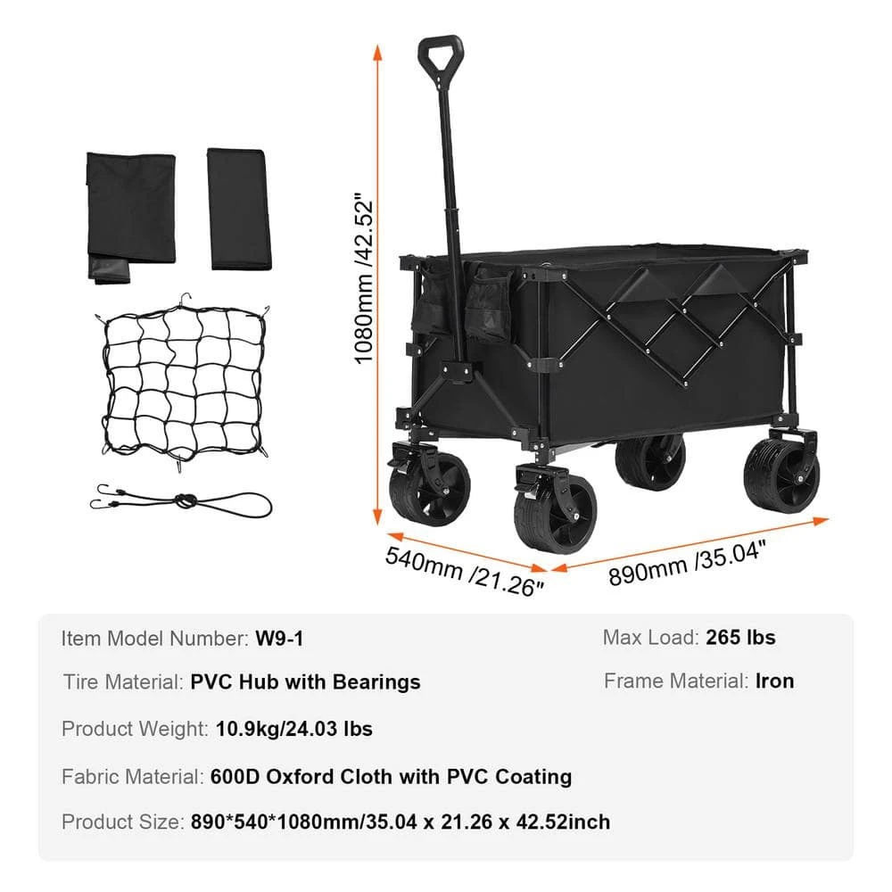 Max 265 lbs. Weight Capacity Collapsible Foldable Wagon. Built with a sturdy reinforced iron frame and premium powder coating for excellent rust resistance. Be your reliable helper for outdoor adventures, family picnics or everyday use.