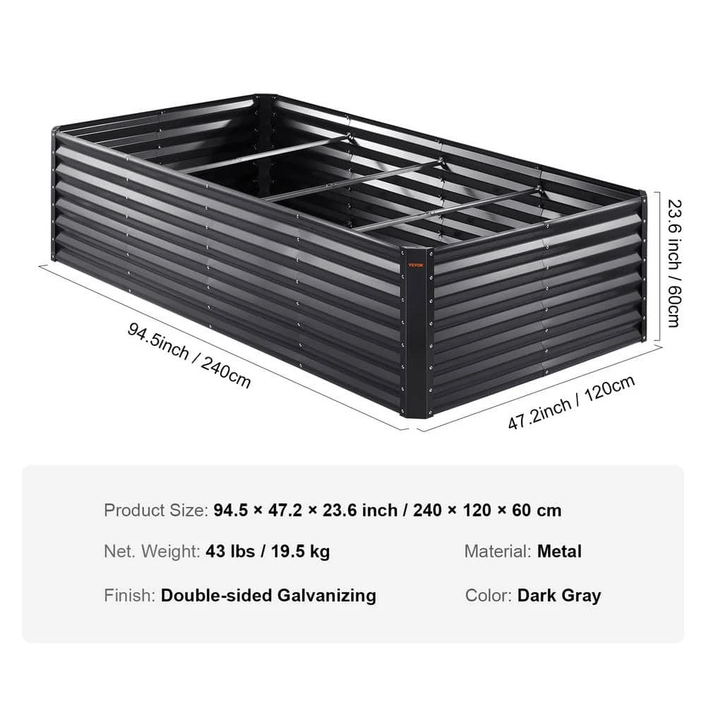 - Large raised garden bed: VEVOR 8 ft. x 4 ft. x 2 ft. raised planter box with 456 gal. soil capacity provide enough space for sample to grow, 2 ft. D is better to deep rooting plants and vegetables, this size also can reduce your hassle of bending down; perfect for growing vegetables, fruits, herbs, succulents, broccoli, beans and more in patio garden backyard