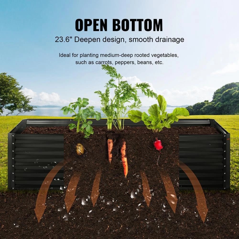 - Open base: our metal raised beds provide 2 planting methods, if you are worrying about your plants receiving enough water, well, you are in luck, our garden bed features an open bottom, ensuring excellent drainage to protect plants’ roots