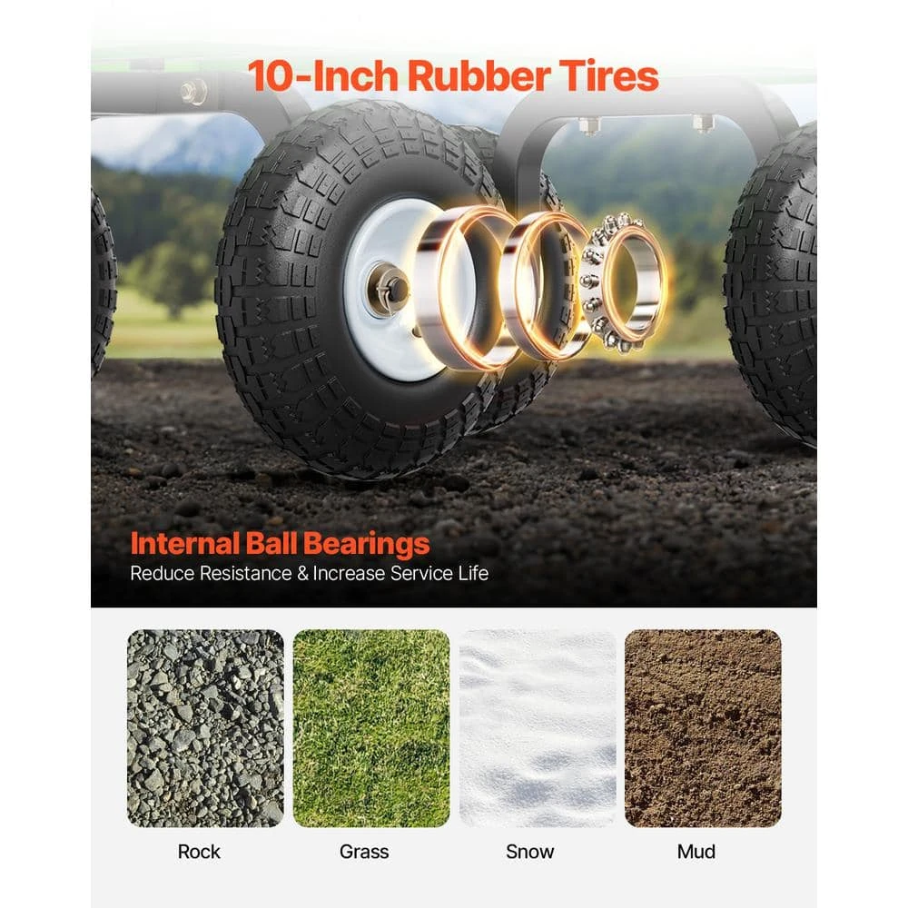 - 360° rotating wheels: equipped with 10 in. rubber tires and metal hubs, the wheels of this heavy duty steel garden cart ensure smooth movement across various terrains, including grass, mud, rocks, and snow, its sturdy design provides stability while reducing the effort required for transport