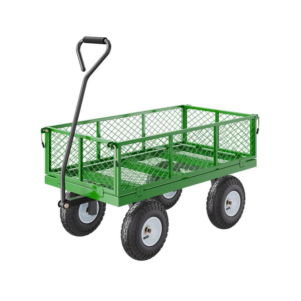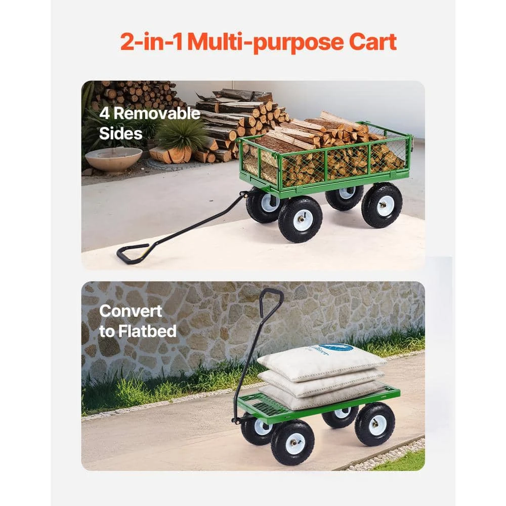 - 2-in-1 multipurpose design: with convertible modes as a fenced cart and a flatbed cart, this versatile garden cart wagon adapts to a variety of tasks, whether you’re hauling loose materials or bulky items, it handles them effortlessly, its 4,52 cu. ft. Load bed provides ample space for all your gardening and transportation needs
