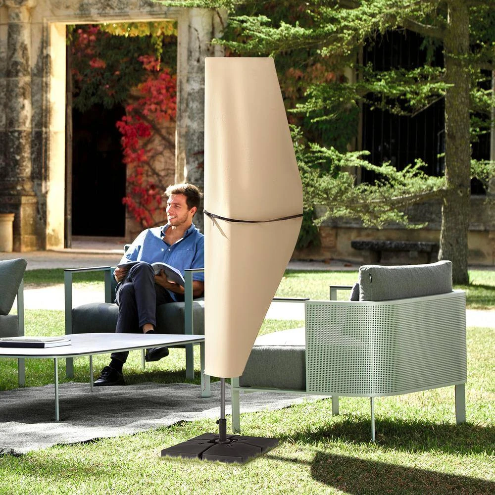 Outdoor sunshade umbrella cover: This sunshade umbrella cover is suitable for banana style umbrellas up to 13 ft. Dia which is windproof, rainproof, sunproof, dustproof, etc., which allows the sunshade to withstand extreme temperatures, frost, snow, rain, and UV rays. internal coating and double-sewing: The inside of this parasol umbrella cover is coated with PU coating, the water droplets will not penetrate the umbrella even if it rolls down from the fabric, and the double-sewing design increases the firmness, which can be waterproof, dustproof, windproof.