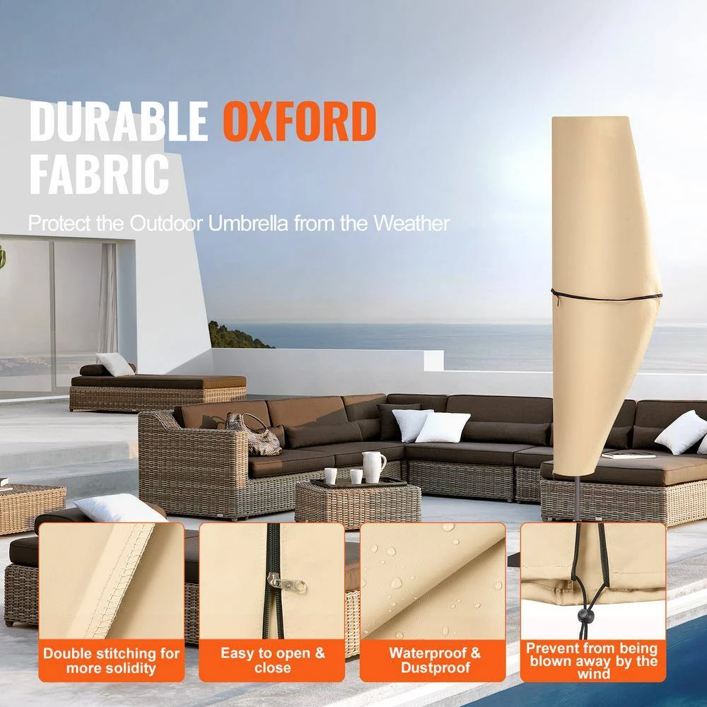 - Sturdy and durable: this parasol umbrella cover is made of durable 420D oxford fabric with PU coating, and the double stitching design can increase the firmness, protects your patio umbrella from sun, rain, snow, wind, dust and dirt, prolongs its service life