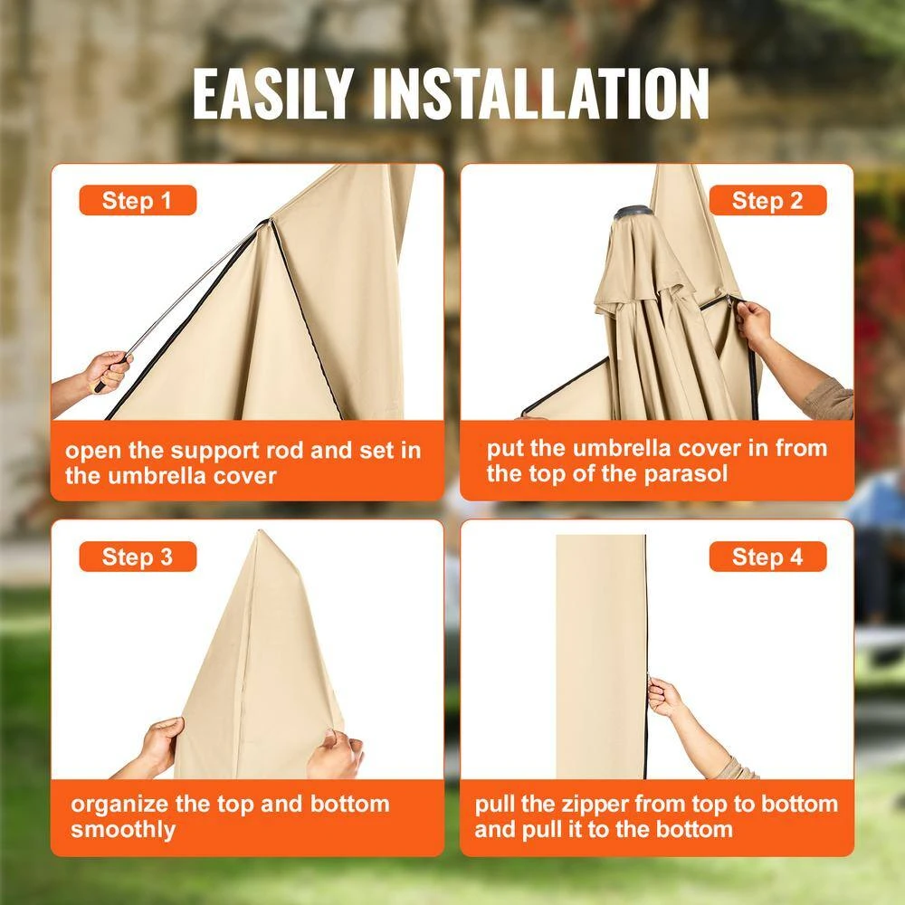 - Easy to use: this parasol umbrella cover has a long zipper design on the side, which makes the umbrella cover more convenient to wear and easy to clean, wipe it with a damp cloth or rinse it with water, then dry it under the sun; foldable and easy to store, when not in use, it can be put into the organizer bag, does not take up space