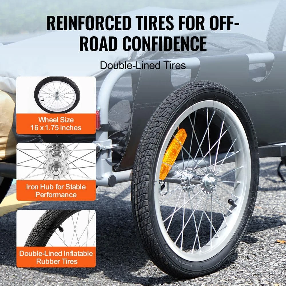 Carry More, Ride Farther with VEVOR Bike Cargo Trailer. Packed with strength, space and durability, this bicycle trailer is your ticket to hassle-free adventures. Stay safe, stay stylish and stay ready for anything, whether you’re hitting the trails or cruising the city streets. Let’s make every ride a blast.