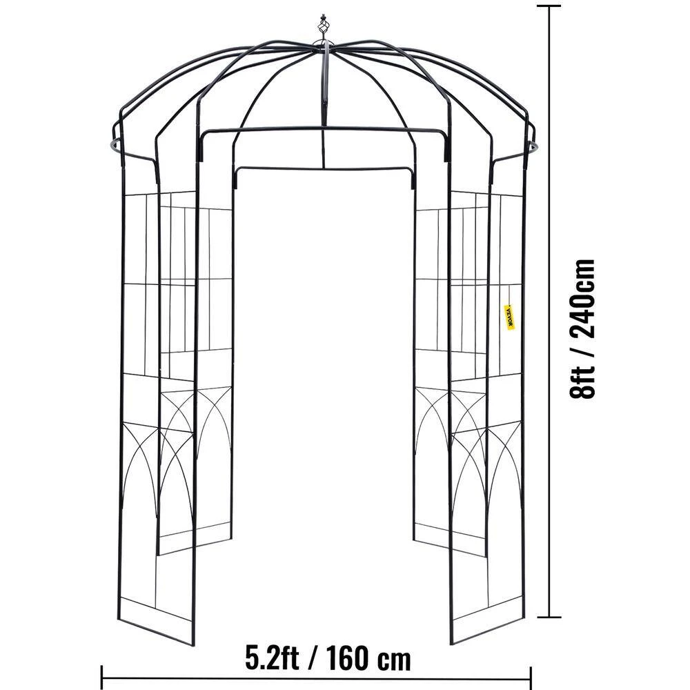 Heavy-duty Steel Construction and Corrosion-proof and DIY Uses Manufactured from high-quality steel, our VEVOR birdcage shape gazebo is both galvanized and powder coated to give an extremely attractive and corrosion-proof finish. It creates a stunning focal point in the garden, based on classic French-style arch design, which will grace your garden for years to come. You can also use it as a meditation place, a wedding ceremony, an outdoor pavilion or a flower trellis for cultivating various plants, such as ivy, clematis, wisteria, morning glory, etc. It’s practical and romantic.