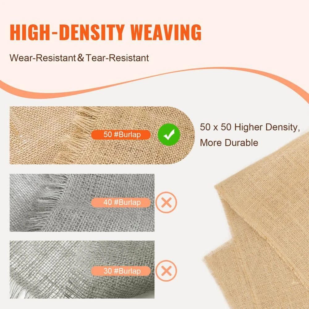 - Specifications: item model number: 50 x 50 x 40 in. x 30 ft.,main material: natural burlap fiber,material weight: 7.94 oz./yd²(270 g/㎡),yarn density: 50 x 50,color: natural color,product dimensions: 40 in. x 30 ft, / 1016 mm x 9.1 m,product weight: 2.8 kg / 6.17 lbs.