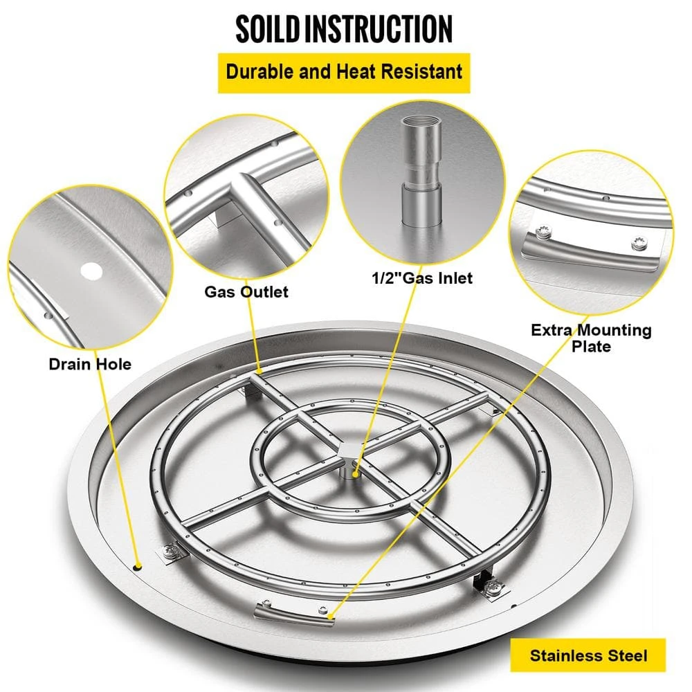 - Superior Fire Pit Pan: Drop in fire pit pan’s fire pit plate and burner is made of stainless steel, which can withstand high temperature and bad weather; built-in drainage hole to keep ponding, it is very suitable for heating in the courtyard or by the swimming pool
