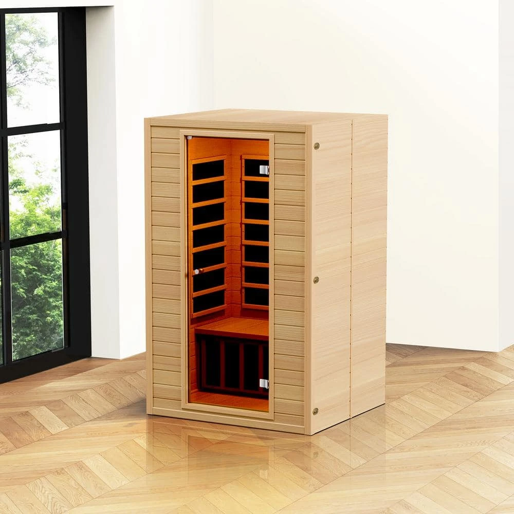 - Perfect for 2 people: with a compact size of just 47.44 in. x 41.34 in. x 75.59 in. this mini sauna room provides at ultimate relaxation experience for 1 or 2 people, it can be conveniently installed in your living room, bedroom, basement or even a personal gym