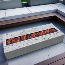 - Free To Add Fire Glass: Feel free to add fire glass or lava rocks. The amount of fire glass you will need to fill in the fire pit pan is greatly reduced thanks to its cost-effective design. The 61 x 8 in. linear pan uses approximately 50 lb. of fire glass