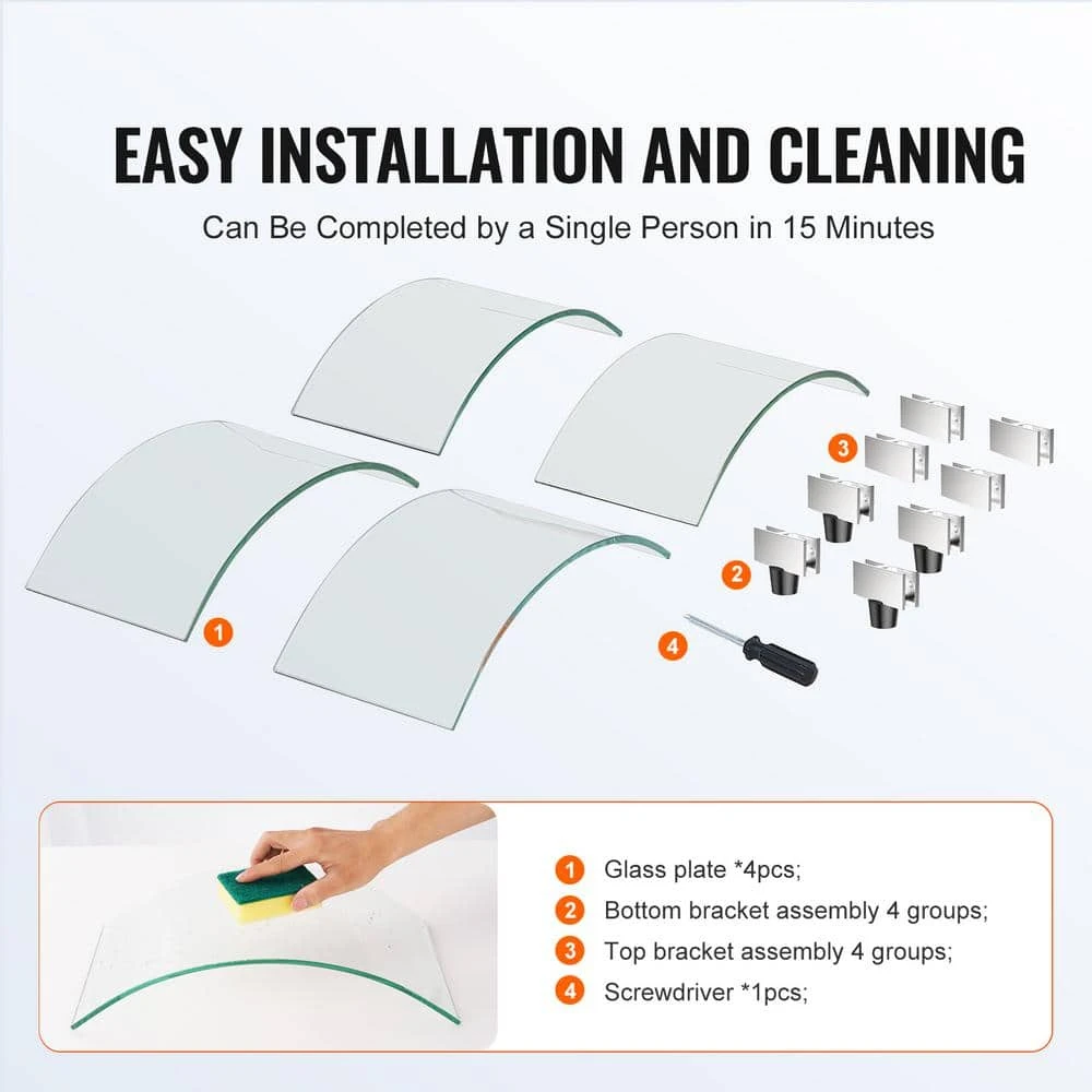 - Package Content:Glass Panels x 4,Bottom Bracket Components x 4 Sets,Top Bracket Components x 4 Sets,Screwdriver x 1,Instruction Manual x 1