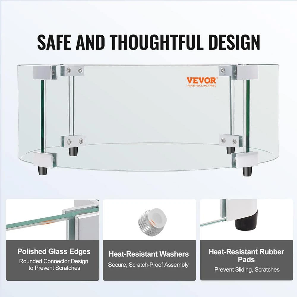Fire Pit Wind Guard, Effective and Safe Protection. Our fire pit wind guard offers excellent wind protection for a stable flame. It’s made of tough tempered glass and durable aluminum, resistant to heat and breakage. Easy installation with the included screwdriver. Essential for courtyard, balcony parties, and keeping warm with your fire pit table.