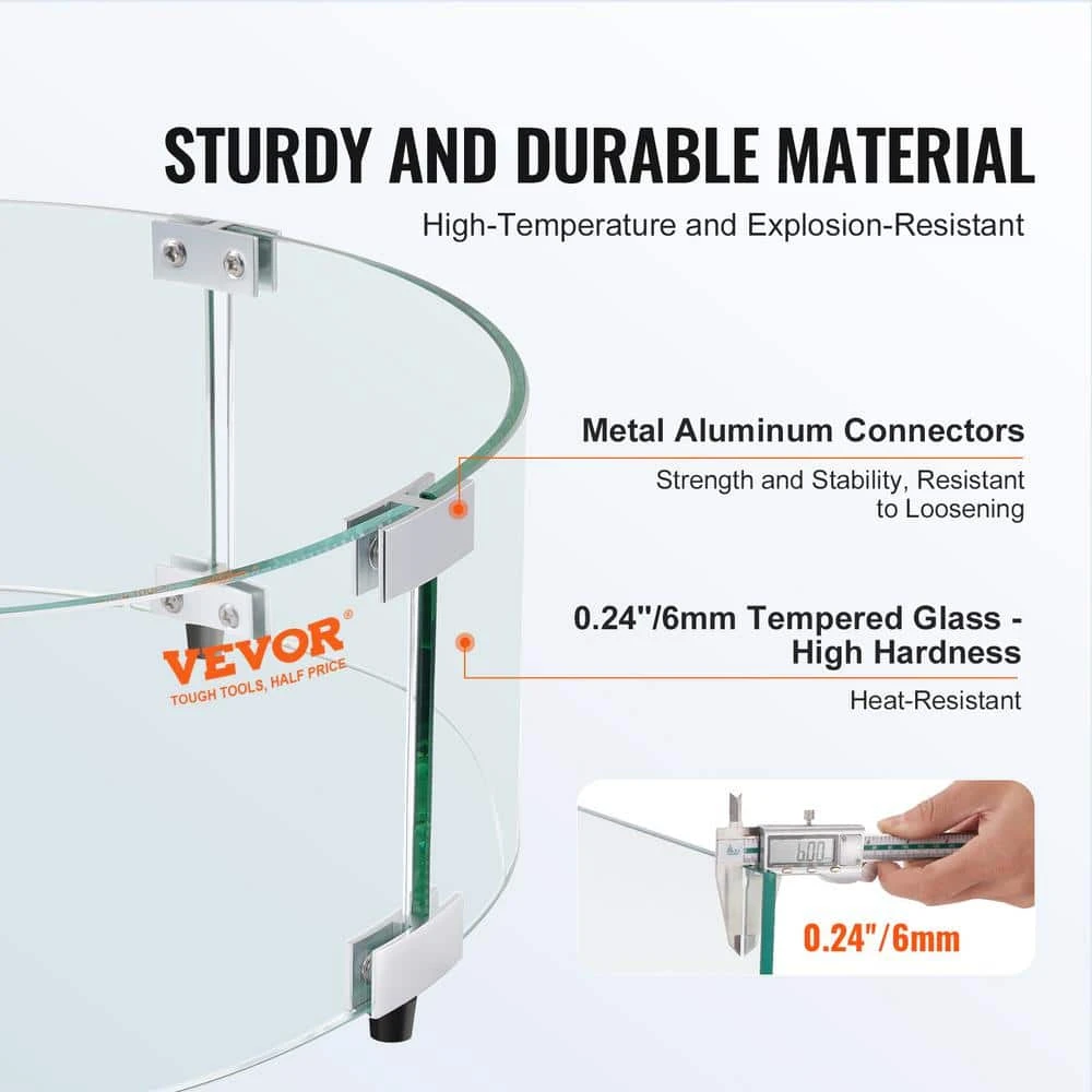 - Sturdy and Durable: Our fire pit wind guard is constructed with four tempered glass panels, each 0.24 in.(6 mm) thick, offering high hardness and heat resistance while being less prone to breaking. The connectors are made of aluminum alloy material, providing strength, stability, and secure installation to prevent the wind guard from loosening or falling off
