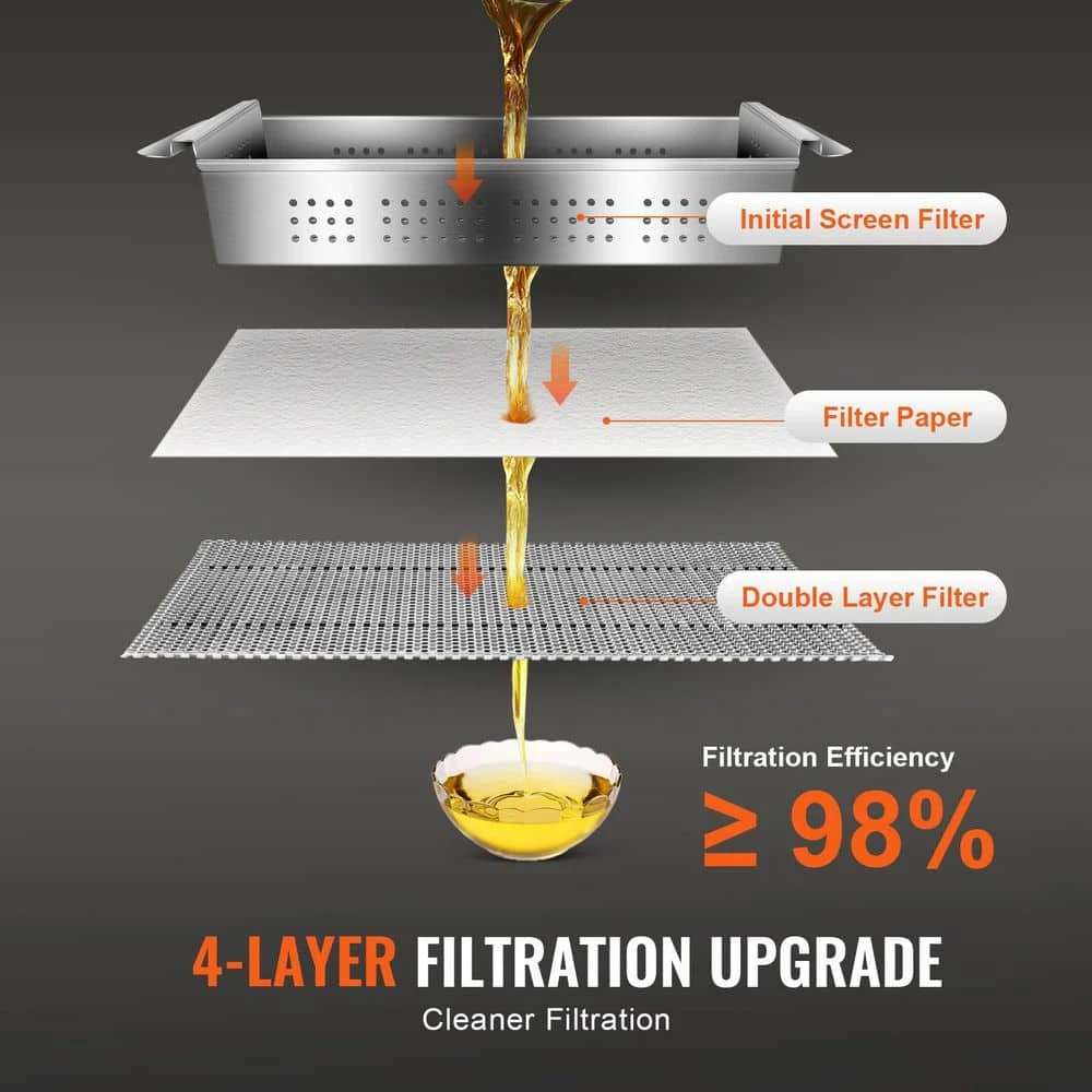 Upgrade Your Oil Filtration with VEVOR Mobile Fryer Filter.Our fryer filter machine takes your oil game to the next level by kicking out sediment, carbon buildup, and other nasty stuff that messes with your oil’s taste. It’s like giving your oil a spa day, making it last longer and saving you some serious costs in the long run.