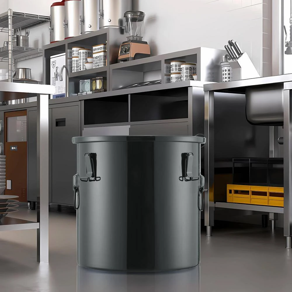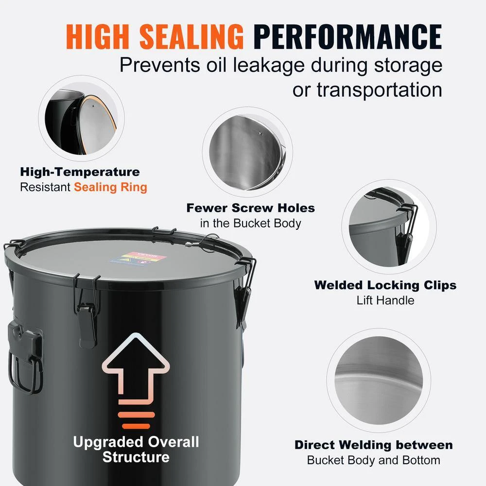 - Excellent sealing say hello to four handy quick-locking clips, they snugly secure the lid with just a simple press and with a built-in high-temperature-resistant sealing ring, you can kiss leaks goodbye, no spills, no mess-just sealed freshness all the way. plus the grease bucket body is welded to the bottom to prevent any sneaky oil leaks