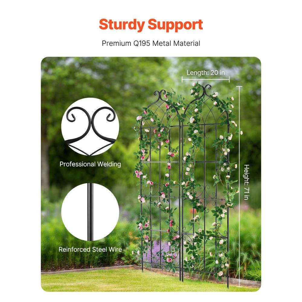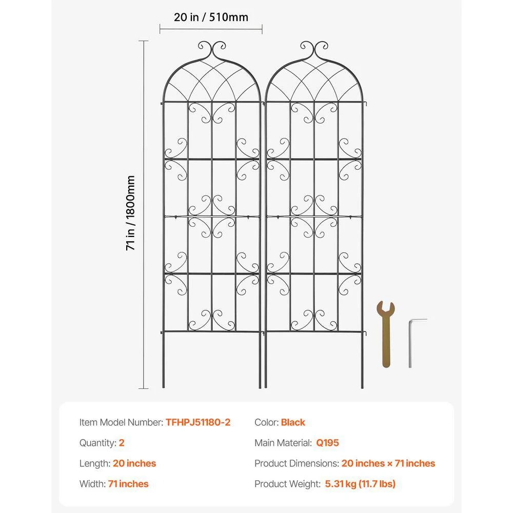 2 Packs Metal Garden Trellis for Climbing Plants 71 x 20 in.. Designed for durability and stability, this elegant garden trellis withstands the elements while offering robust support for your plants. Ideal for flowers, vegetables, and fruits, it meets diverse planting needs and enhances your garden with an artistic touch.