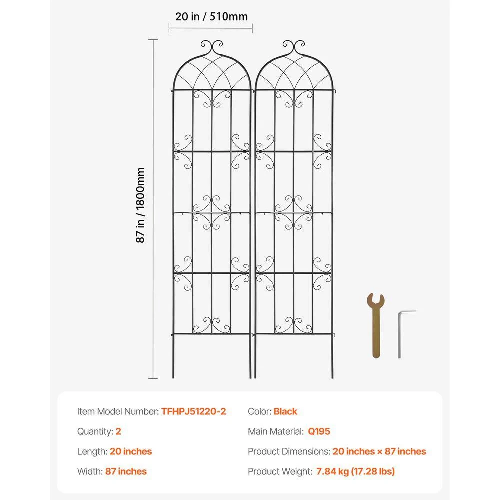 2 Packs Metal Garden Trellis for Climbing Plants 87 x 20 in.. Designed for durability and stability, this elegant garden trellis withstands the elements while offering robust support for your plants. Ideal for flowers, vegetables, and fruits, it meets diverse planting needs and enhances your garden with an artistic touch.