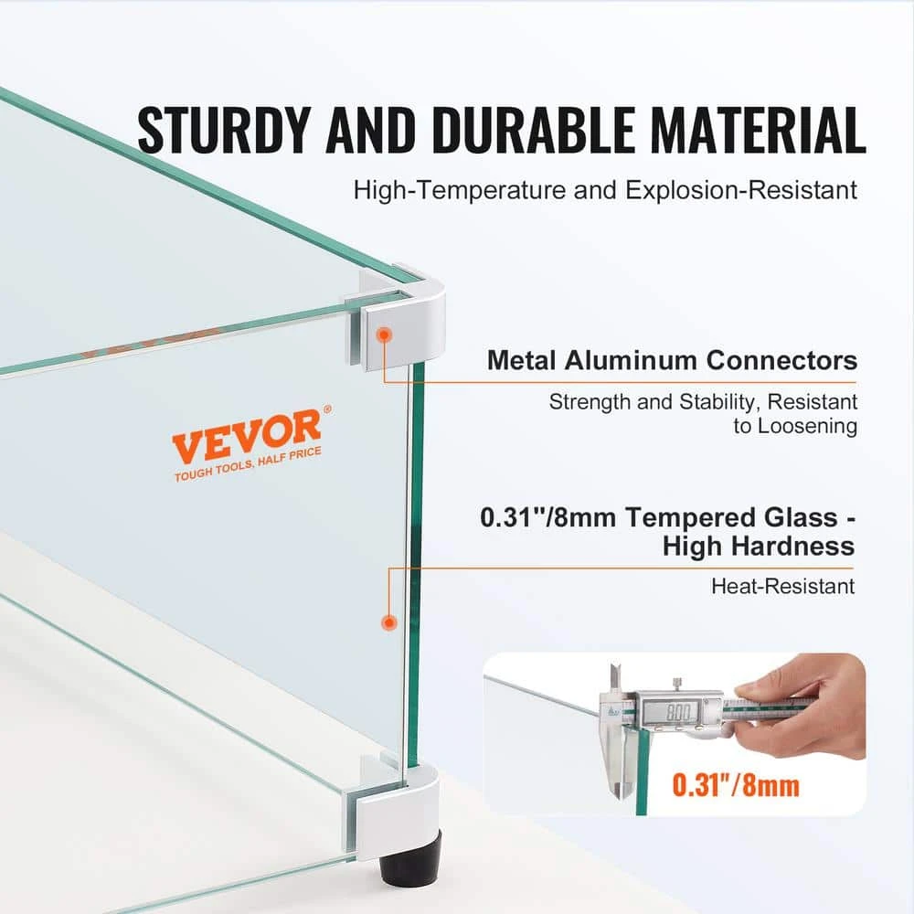 - Sturdy and Durable: Our fire pit wind guard is constructed with four tempered glass panels, each 0.31 in./8 mm thick, offering high hardness and heat resistance while being less prone to breaking. The connectors are made of aluminum alloy material, providing strength, stability, and secure installation to prevent the wind guard from loosening or falling off