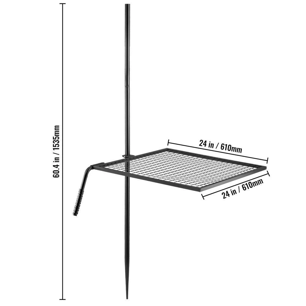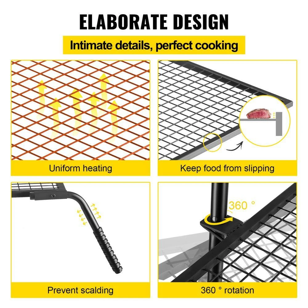 The VEVOR swivel grill can make delicious grilled meats and roasted vegetables over an open fire. It features a mesh wire design so that you can place a variety of foods on top of the skillet. In addition, the rotating baking tray design allows you to heat food more evenly. Both the rack and the pole are super durable. They are made from heavy steel and are powder-coated for greater strength.