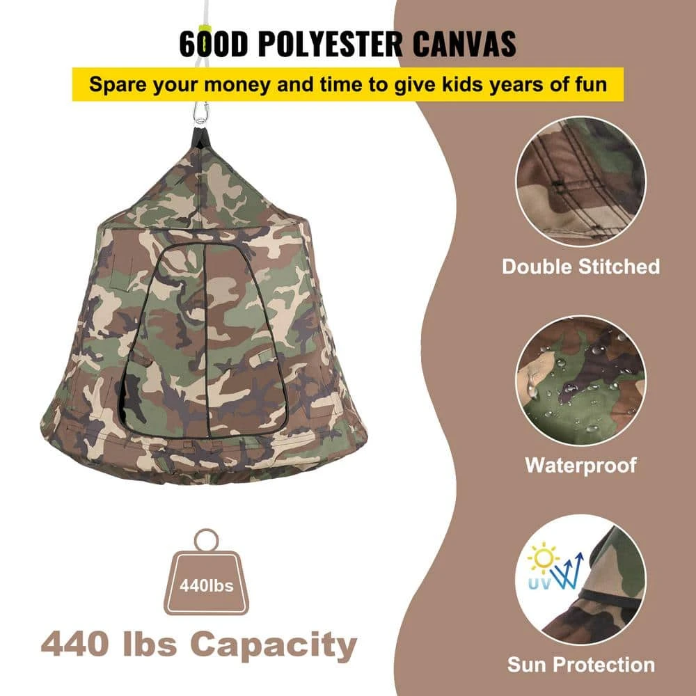 The VEVOR hanging tree tent goes beyond all the fun of our classic tent. It is lightweight and portable, and easy to hang almost anywhere, so it can travel wherever your family roams. You can take it to the beach, the park, camping, grandma’s house, or just your backyard to make a comfortable spot to play, read, listen to music, or just snuggle.
