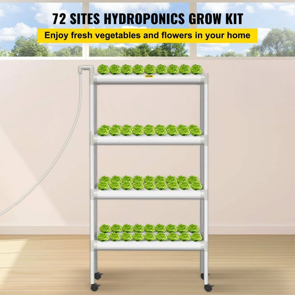 - Easy to install and use: our hydroponics system includes 1 set of planting pipes, 4 wheels, 1 timer, 1 water pump, 1 hose, 1 power plug, 72 planting baskets, 72 sponges, 1 tweezers, 1 rubber hammer, and 1 instruction manual 4-wheels make it easy to move, allowing the plants to get enough sunlight