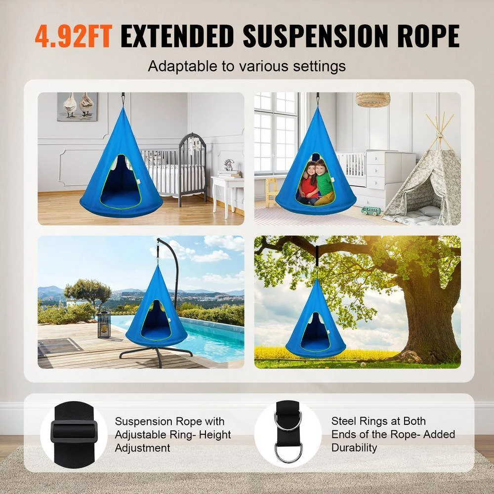 Swing into Comfort and Joy with VEVOR Kid’s Nest Swing Chair. Our hammock swing chair is constructed from durable 600D Oxford fabric. It features reinforced stitched seams, enhancing tear resistance. The high-strength steel frame ensures a sturdy structure, safely accommodating up to 250 lbs., using with peace of mind.
