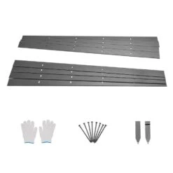 - Package content: 1 x instruction manual, 8 x metal edgings, 40 x plastic stakes, 7 x clips, 1 x pair of gloves