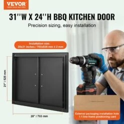 30 In. W X 21 In. H Double Stainless Steel Access Doors With Vents BBQ Grill Doors For Outdoor Use