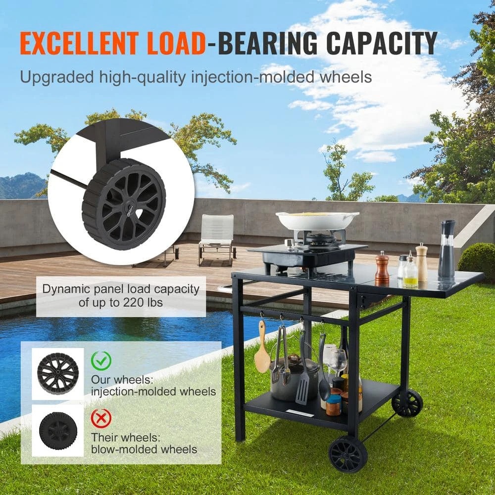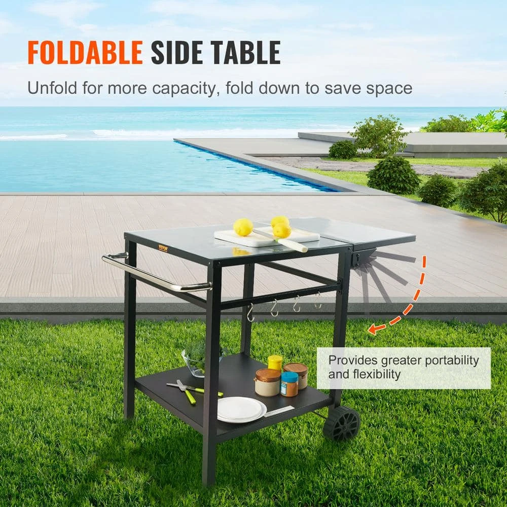 - Foldable side table:this bbq movable food prep table is designed with a foldable tabletop to bring you more convenience. when the side table is unfolded, it provides additional space to accommodate more items. when not in use, the side table can be folded down to save storage space. additionally, the edges of the tabletop have been carefully polished to prevent your hands from being scratched by burrs