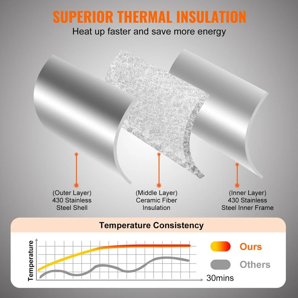 - Gas Powered: Gas-powered pizza oven with knob control for ignition, offering higher efficiency and convenience. No need to handle fuel waste, clean and easy