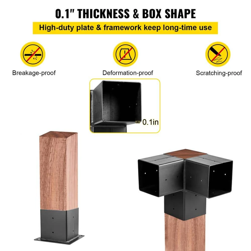 Pergola Bracket Kit. Fit for Standard 6 in. x 6 in. Brackets, Indoor and Outdoor Usage and Full Accessory. Our VEVOR carbon structural pergola kit steel brackets provide 4 bracket shoulders and 4 bracket boots which possesses scratchproof and rustproof function. In addition 3way right angle corner and half-closed box design enhance the durability and pergola and the 0.1 in. thickness steel plate has been sandblasted and powder coated. And such high-quality brackets will help you build a stable pergola.