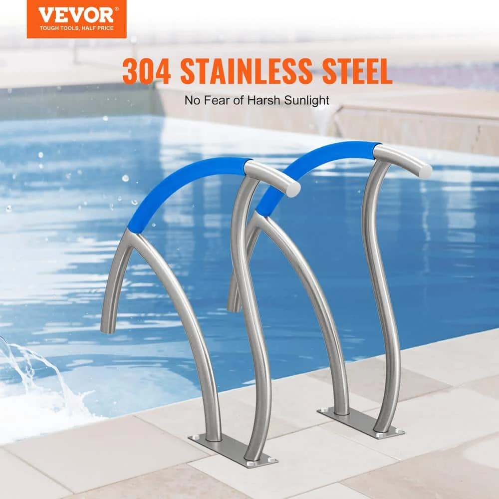 - ???????????????????????????????? ????????????????????????????????:For saltwater pools, choose 316 stainless steel or other materials. This rail may have a potential risk of rusting. Use a blue Scotch Brite pad to clean rust spots. 304 stainless steel pool handrail: our pool handrails are made from durable 304 stainless steel, designed to withstand wave impacts, anodized for uv protection, they resist deformation and feature precise welding, making them ideal for outdoor pools