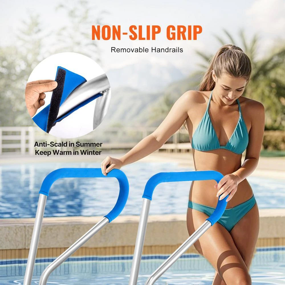 - Supports up to 220 lbs.: with exceptional weight capacity, our pool safety rails provide secure support for both adults and children, the seamless 1-piece design is sturdy and durable, with thickened pipe walls and base for added strength