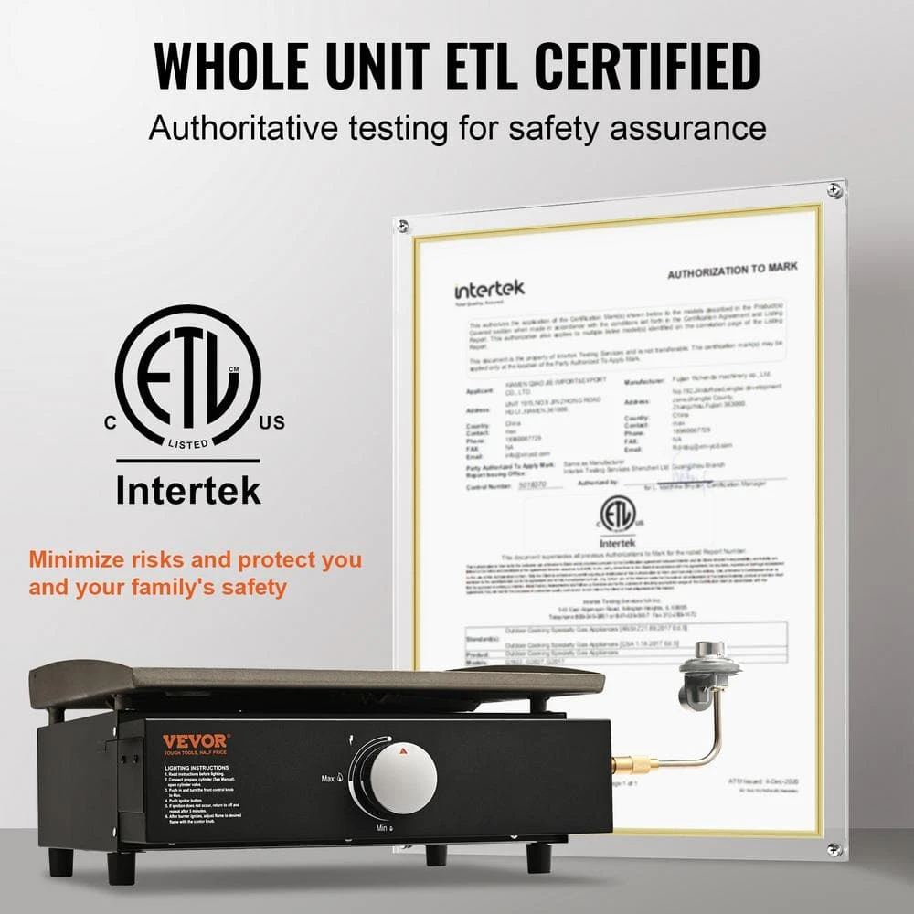 The multi-functional grill plate allows you to grill, fry, stir-fry and cook various delicacies, catering to your culinary creativity. The compact and portable design enables you to enjoy delicious food anytime, anywhere, creating a movable kitchen. The baking pan is made of sturdy hot-rolled steel and coated with a layer of vegetable oil to prevent rusting, ensuring healthy cooking. It is also ETL certified, having undergone authoritative testing and evaluation, guaranteeing your safety and your family’s safety.