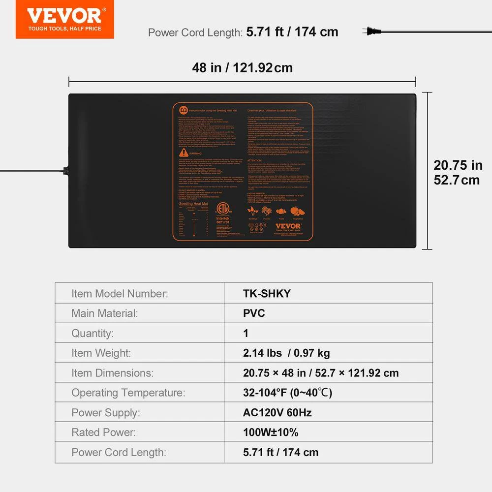 Seedling Mat 48 In. X 20.75 In. Heat Mats (1-Pack) MET-Certified Waterproof Heating Pad