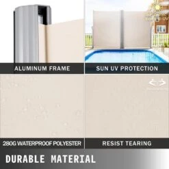 118 In. X 71 In. Retractable Side Awning Waterproof Patio Screen Room Divider Beige For Privacy