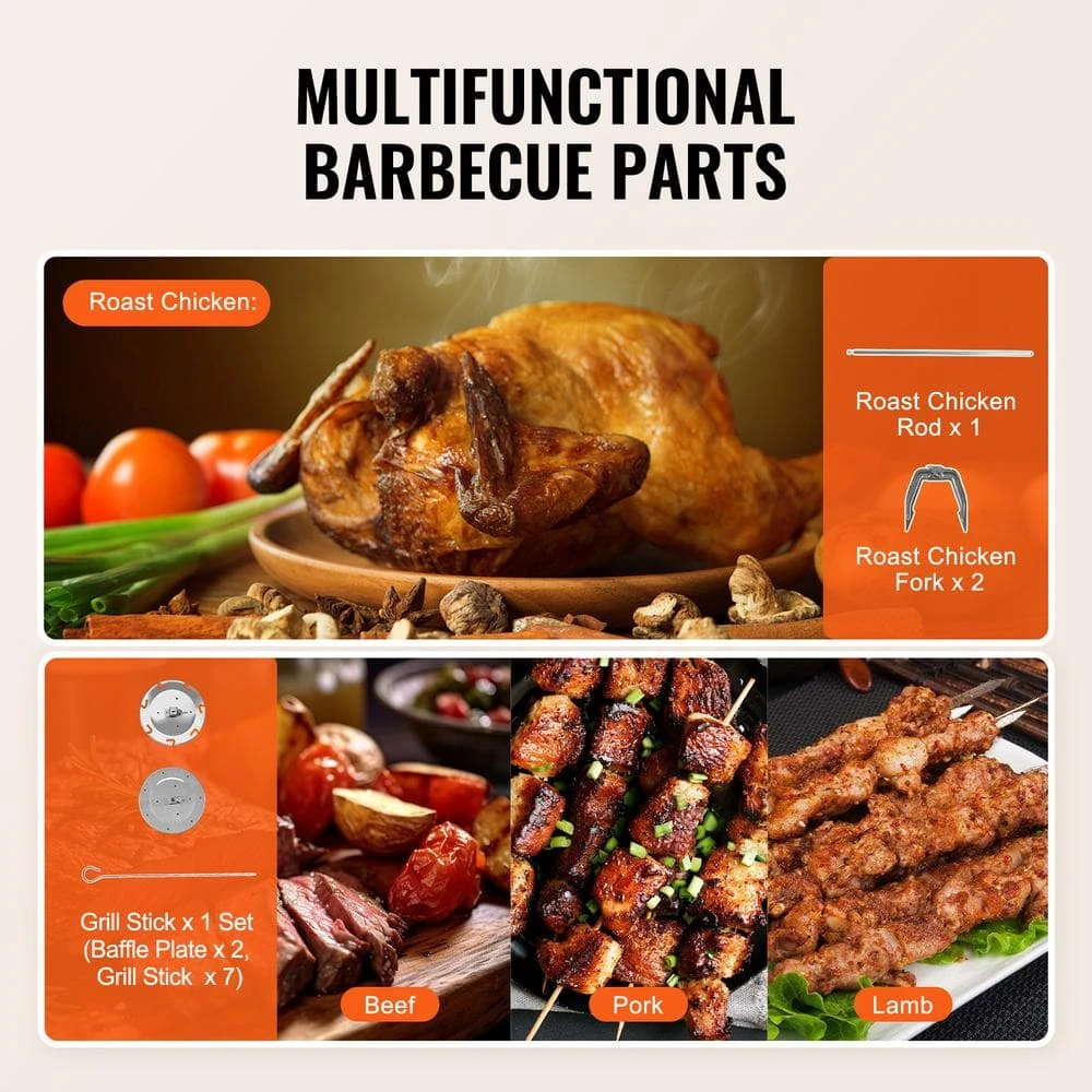 - Multifunctional parts: to accommodate different types of meat, we’ve equipped the gyro rotisserie with various components, such as a set for roasting chicken (including 2 chicken forks and 1 chicken rod) and a complete skewer kit (featuring 2 baffle plates and 7 grill sticks) this multifunctional setup allows for grilling chicken, kebabs, and more
