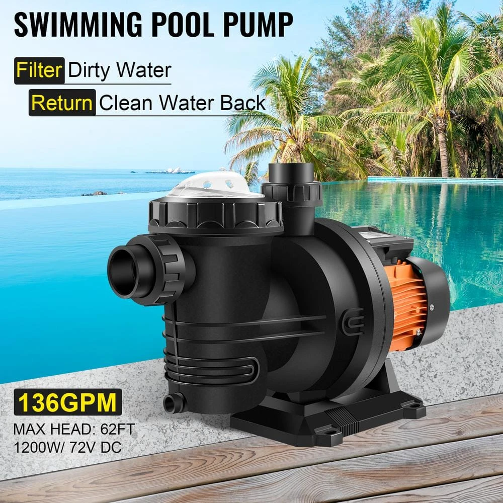 - Powerful DC motor: our swimming pool pump is equipped with a 1200-watt powerful DC motor, rust-resistant, durable and powerful; it also features an impeller that maximizes flow, minimizes noise; the motor will not be overheated for the built-in heat-triggered protection when running, having a longer service life