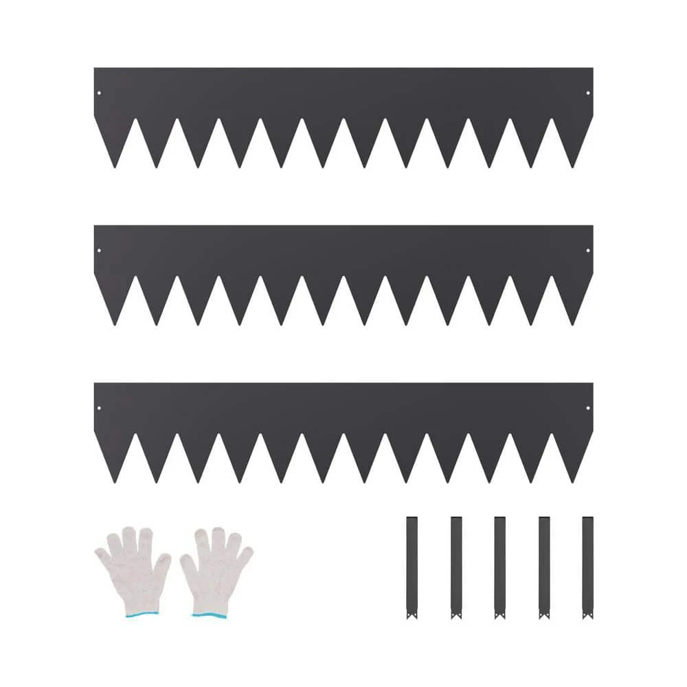 - Various sizes: VEVOR steel landscape edging is available in a set of 3-pieces, each measuring 40 in. x 8 in., it comes with 5 clips for effortless installation, the extended spikes make secure ground anchoring, allowing you to create clean lines and spaces in your lawn. Loved by gardening enthusiasts