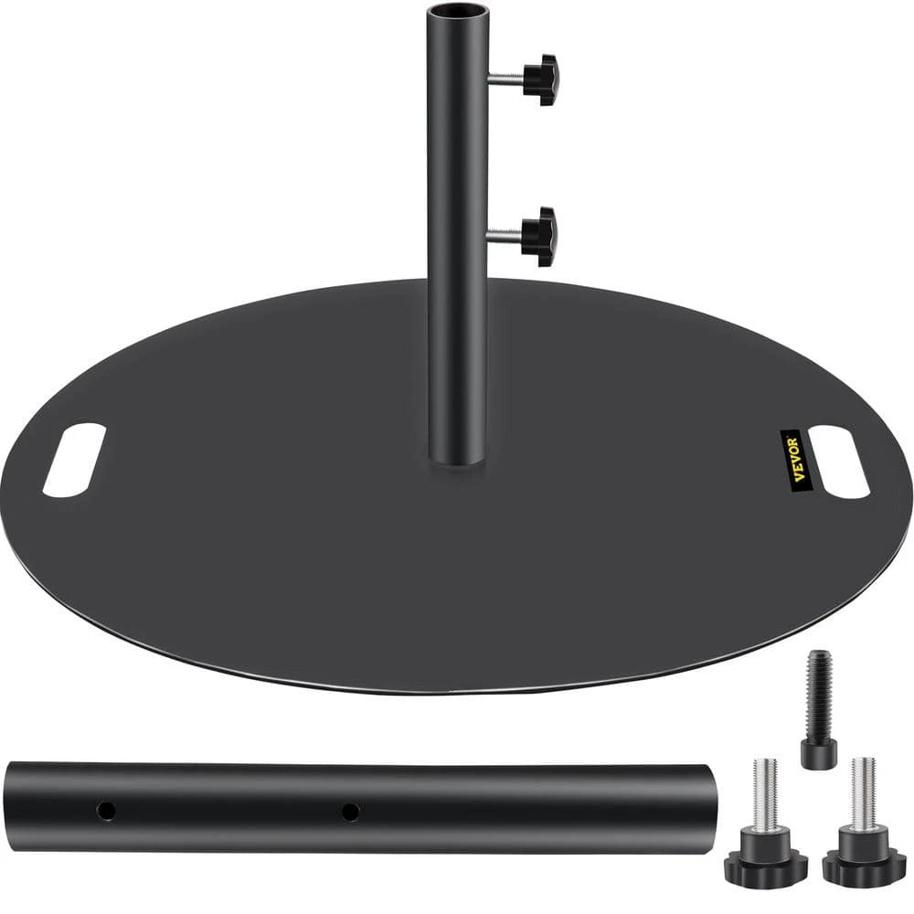 The VEVOR 27 in. round umbrella base is suitable for parasol pole, which can be fixed on deck and ground and used in shopping malls, courtyards and other places. The 1.5 in.-1.875 in. pole can be fixed with this umbrella base to ensure the stability of the umbrella and flat. High-quality material and powder coating provide the durability of the umbrella stand.