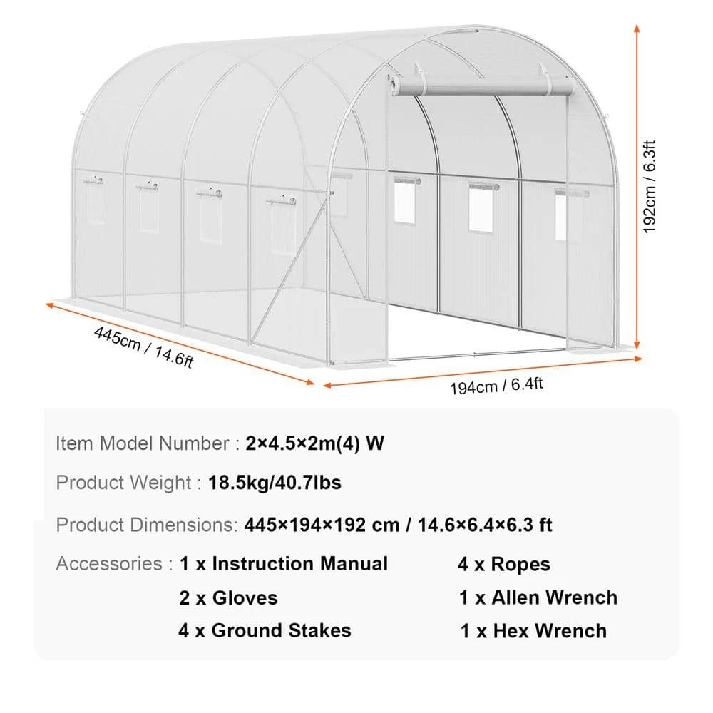 - Spacious walk-in design: with a spacious 14.60 x 6.36 x 6.30 ft. area, this walk-in greenhouse tunnel is ideal for growing a variety of plants, you can easily access and maintain your plants, or set up multiple plant shelves to meet both home gardening and commercial planting needs